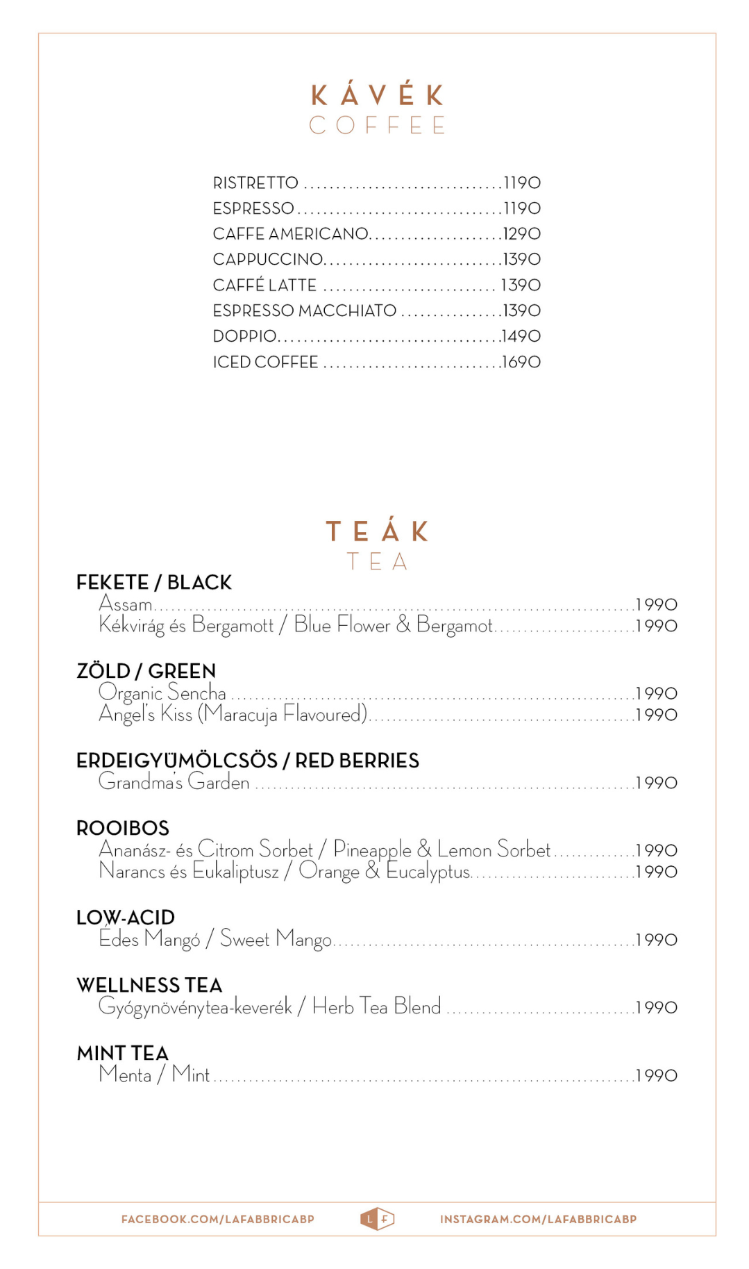 Konyhánk mellett kiemelt szerepet kap a bár is, amely a La Fabbrica igazi szívévé vált. A gondosan összeállított koktélkínálat és a prémium italválaszték a klasszikus ízek mellett merész, modern kreációkat is kínál. 2019-ben a Bar Show-n elnyerte „Az Év TOP 3 Új Bárja” elismerést, ami azóta is inspirál bennünket, hogy folyamatosan megújuljunk és a legjobb élményt nyújtsuk vendégeinknek.